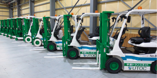 特殊車輌・荷役機器 特殊車輌・荷役機器 宇徳トランスネットでは、業務を支える豊富な特殊車輌・荷役機器を所有し、活用しています。 75tクレーン 60tクレーン 25tクレーン 16tフォークリフト トレーラー・トラック 小型船「わかば」「みどり」 1.5tフォークリフト 1.5tフォークリフト