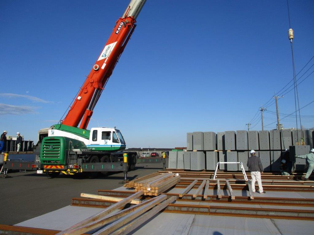 建設用鋼材の保管および作業工程にあわせて施工場所へ搬送しています。